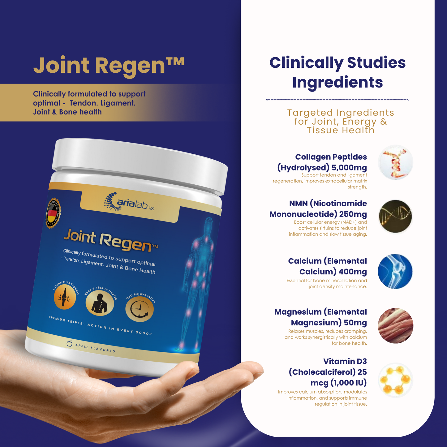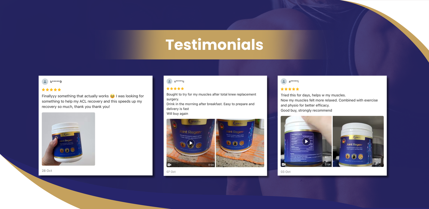 “Joint Regen™ has been a game-changer for me. After years of high-intensity workouts, my knees used to ache constantly. Within a few weeks, I noticed real improvement — less stiffness, faster recovery, and I can finally squat deep again without pain.”