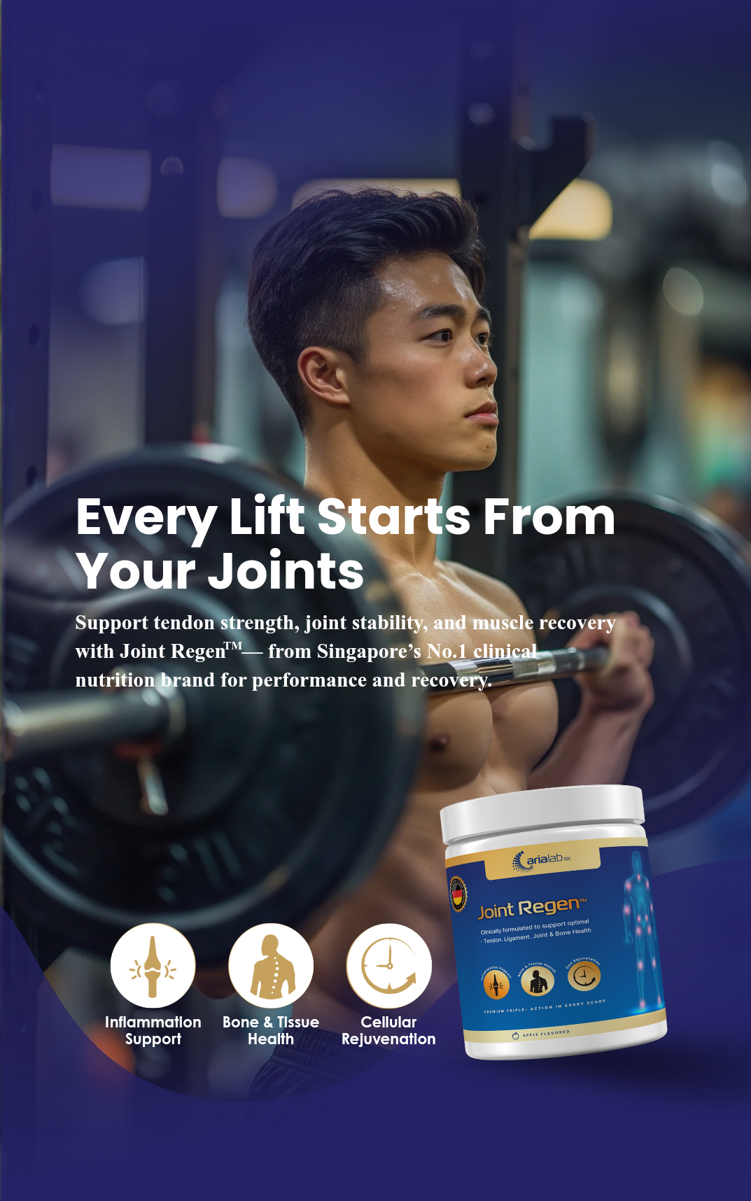 "After years of weight training and outdoor workouts, I started feeling tightness in my knees and shoulders. Joint Regen™ really made a difference — I feel less strain and recover faster between sessions. I trust it because it’s made in Singapore under TÜV-certified standards, which gives me confidence in the quality.”